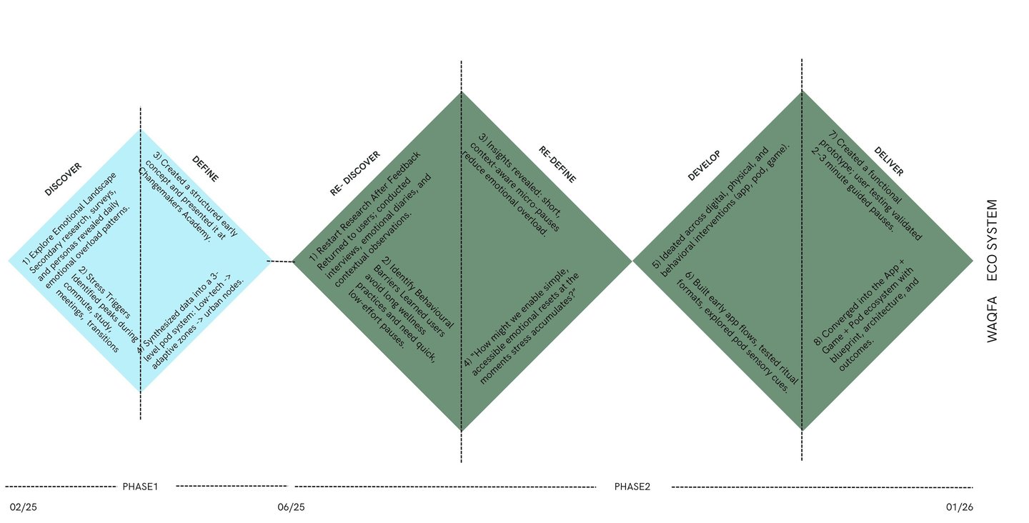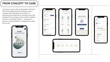 Waqfa taught me how to combine systems thinking with deep empathy to address an urgent and often invisible challenge. I learned how to move fluidly from research to prototyping — balancing emotional design with technical feasibility and considerations around urban planning. This project showed me the power of embedding care into the everyday — not as a retreat from the city, but as a form of civic infrastructure. Looking ahead, I aim to pilot Waqfa with institutional partners and continue designing emotionally intelligent spaces where wellbeing becomes a public right.