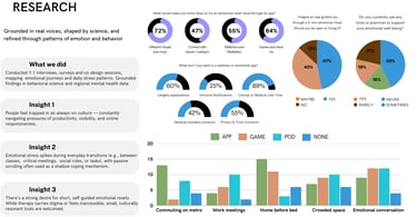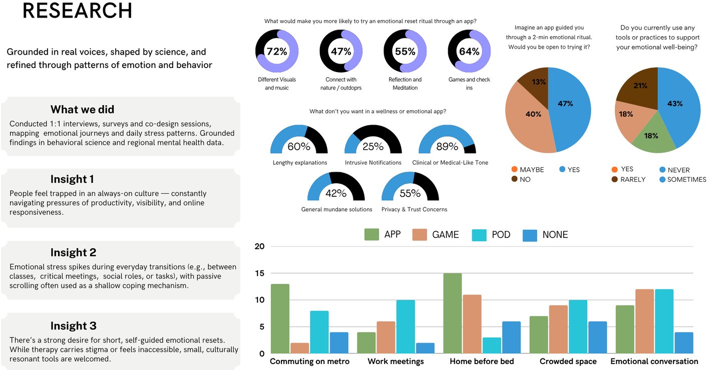 The intent is to design an ambient, non-clinical, and publicly accessible solution that helps people pause and reset within the natural rhythm of daily life. The project explores how cities might support emotional recovery — not just productivity.