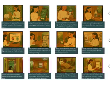 To bring our vision to life, we developed a functional MVP of the Waqfa Emotional Companion App — complete with onboarding, mood check-ins, preventive pause experiences, journaling, and a user dashboard. This prototype serves as both a validation tool and a conversation starter — inviting users, partners, and policymakers to reimagine how urban life can feel.
