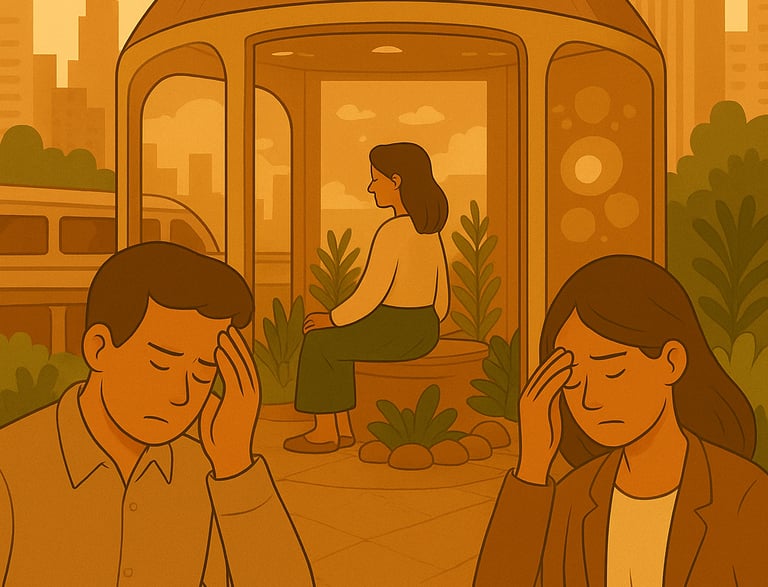 Stress follows a rhythm: fatigue in the morning, anxiety mid-day, burnout by night — but cities don’t offer space for stillness in that rhythm.