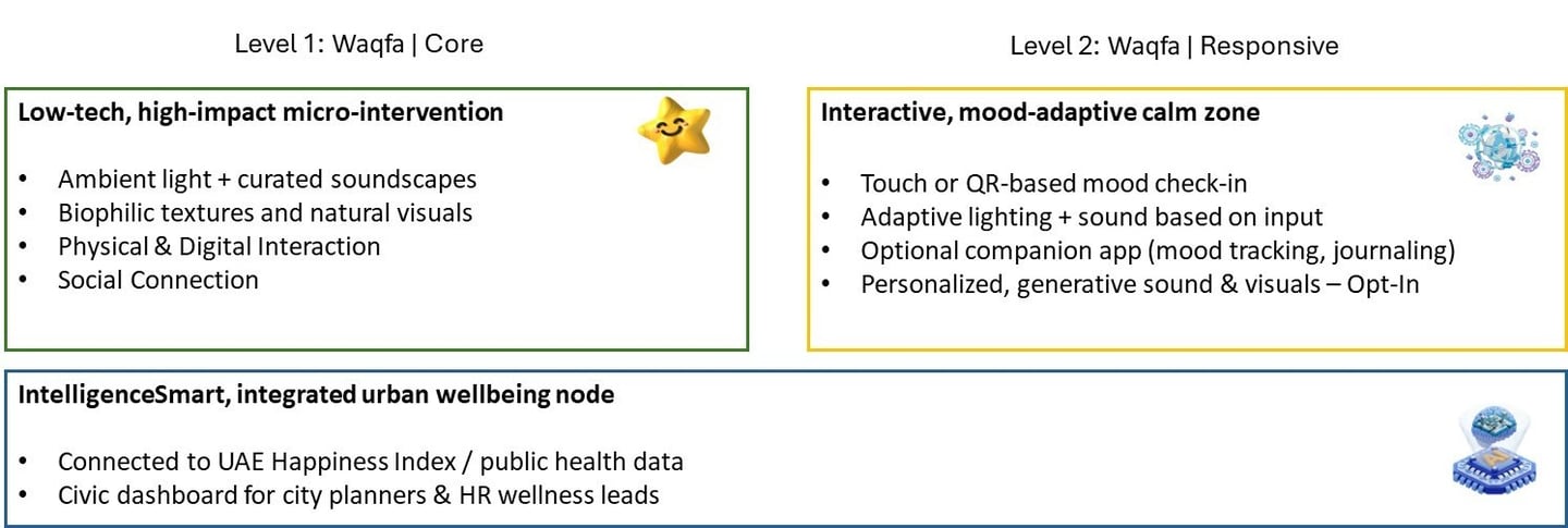 Waqfa taught me how to combine systems thinking with deep empathy to address an urgent and often invisible challenge. I learned how to move fluidly from research to prototyping — balancing emotional design with technical feasibility and considerations around urban planning. This project showed me the power of embedding care into the everyday — not as a retreat from the city, but as a form of civic infrastructure. Looking ahead, I aim to pilot Waqfa with institutional partners and continue designing emotionally intelligent spaces where wellbeing becomes a public right.