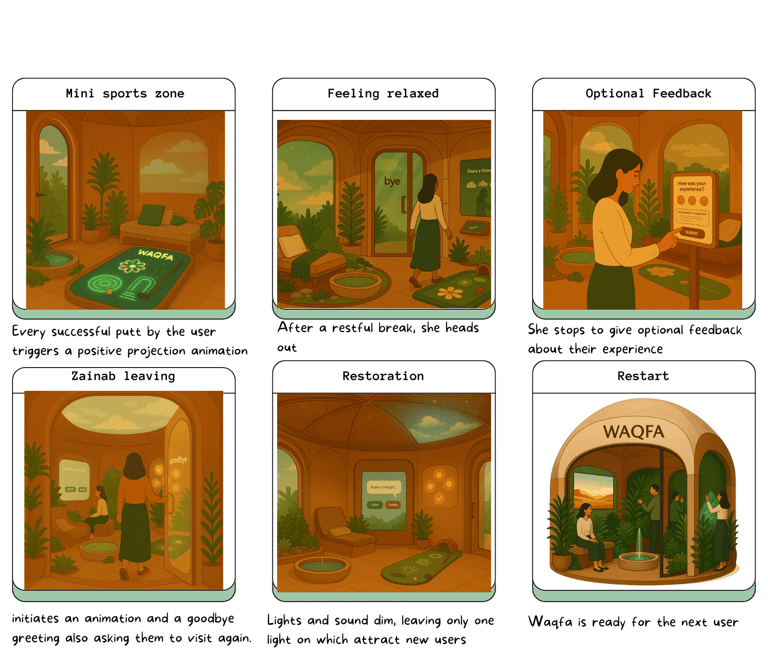 Waqfa reimagines pause as a public good, rooted in cultural traditions of waqf (charitable endowment), and design interventions that make emotional balance accessible—exactly when and where people need it most.